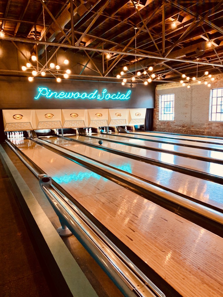 Pinewood Social is located in Nashville, TN and it is a must go to! This place is unreal.. From their amazing atmosphere and food to their retro bowling alley located inside. They have individual work stations with retro desk lamps attached at each space. You can stay all day and work, eat and meet up with friends for dinner! You can follow them on IG at @pinewoodnashville their place is absolutely one of my favorite spots we visited while in Nashville in January.